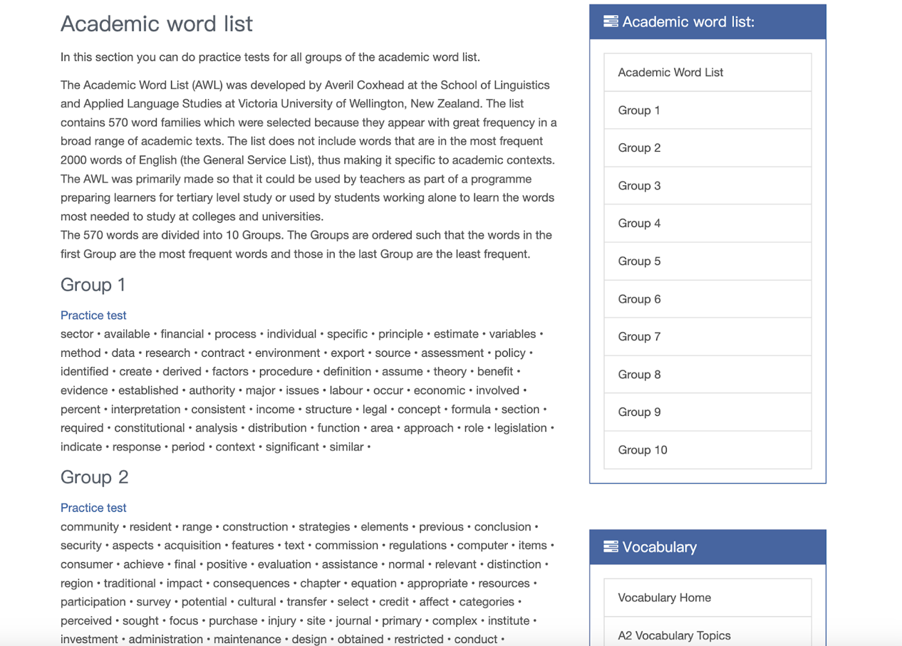 看名字就知道他裡面不只有托福考試的相關資訊,也包含TOEIC、IELTS、PTE等跟考試有關的英文。網站裡面除了介紹托福考試外,也有針對閱讀、聽力、口說這三大項的模擬試題,還有整理了托福常考的單字列表。