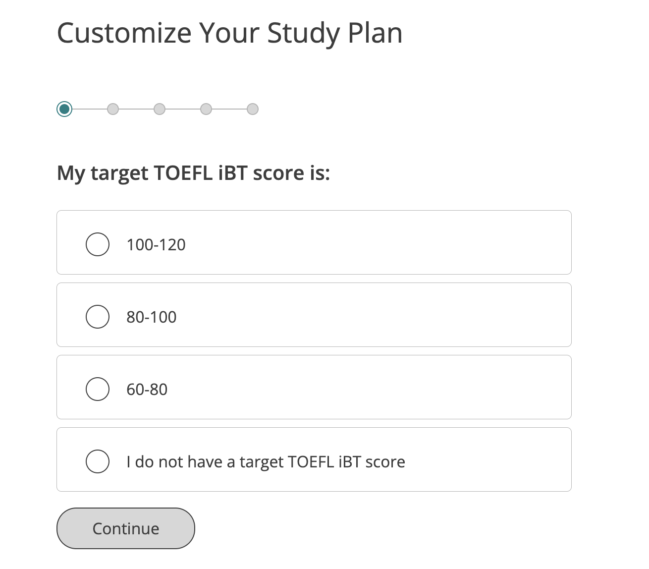 對於想靠自學來準備托福的人,你可以透過Test Ready幾個簡單的問答後,來獲得學習計畫,跟著計劃來準備不會讓你像無頭蒼蠅一樣,不知從何準備起。