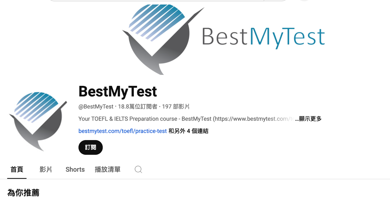 這個BestMyTest跟MagooshTOEFL很像,兩個網站都是針對學習方案不同,而需要進行付費使用。但他們的官方頻道裡還是有不少針對托福以及雅思考試的應考影片可以參考。