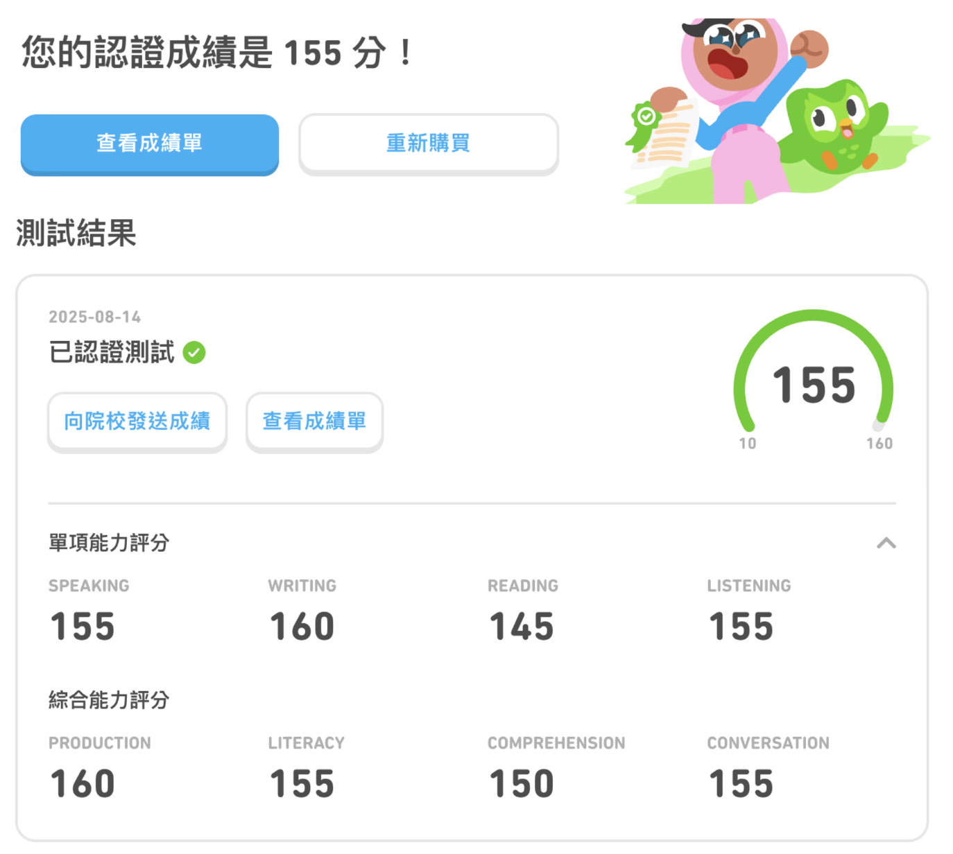 下一篇開始,我來具體分享一下 155 分的 DET 準備/考試心得~