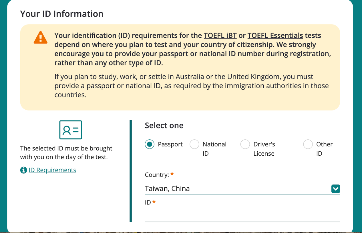 ➜有效護照:托福考試一律需用護照確認身份,身分證、健保卡這些通通不行。因此一定要再三確認護照是否過期、護照是否攜帶。